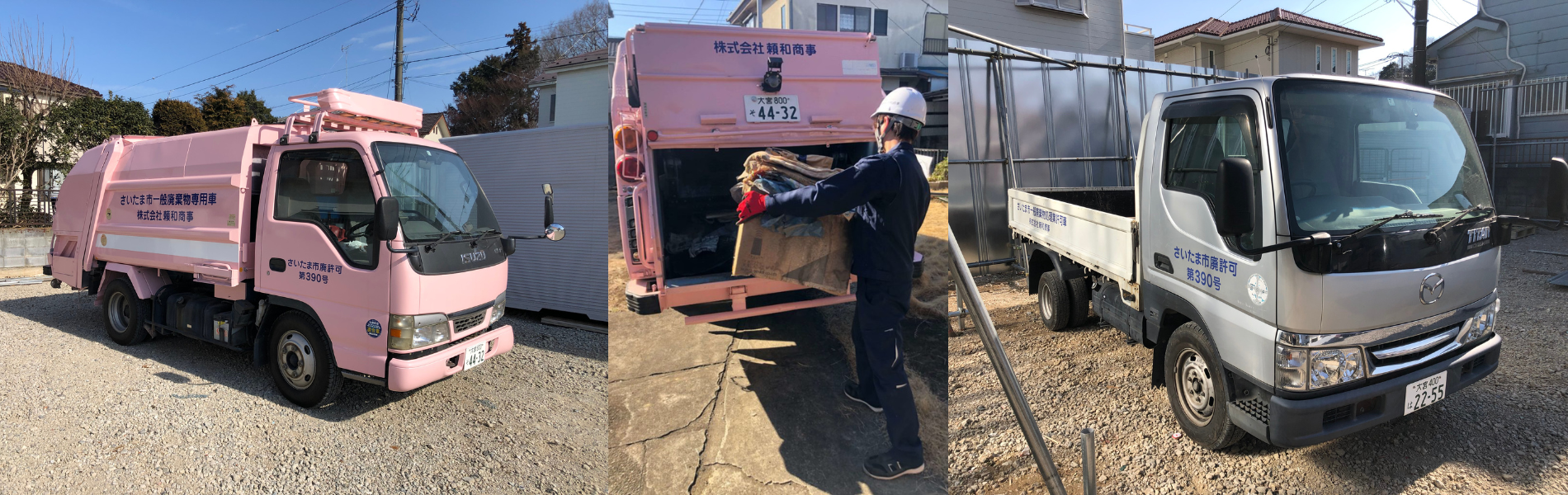 | 許認可 | 建設業許可 埼玉県知事(般-3)第75295号 産業廃棄物収集運搬(埼玉・東京)202278号 一般廃棄物収集運搬(さいたま市)第390号 古物商許可証 第413030057148号 |