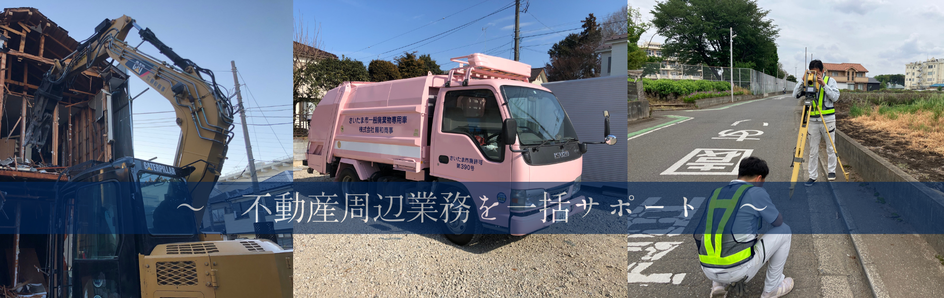 | 許認可 | 建設業許可 埼玉県知事(般-3)第75295号 産業廃棄物収集運搬(埼玉・東京)202278号 一般廃棄物収集運搬(さいたま市)第390号 古物商許可証 第413030057148号 |