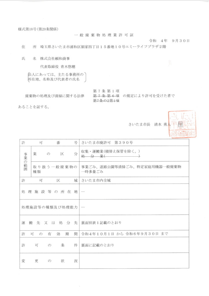 | 一般廃棄物収集運搬 | (さいたま市)第390号 |